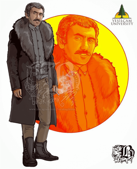 İllüstrasyon ustası Burak Ağdemir Yeşilçam efsenelerinden bazıları için bazı tasarımlar yapmış. Bunu yaparken hem kendinden hemde bizim kafamızda yerleşmiş olan usta oyuncuların filmlerde ki tarzlarını harmanlamış ve ortaya harika bir çalışma çıkmış.