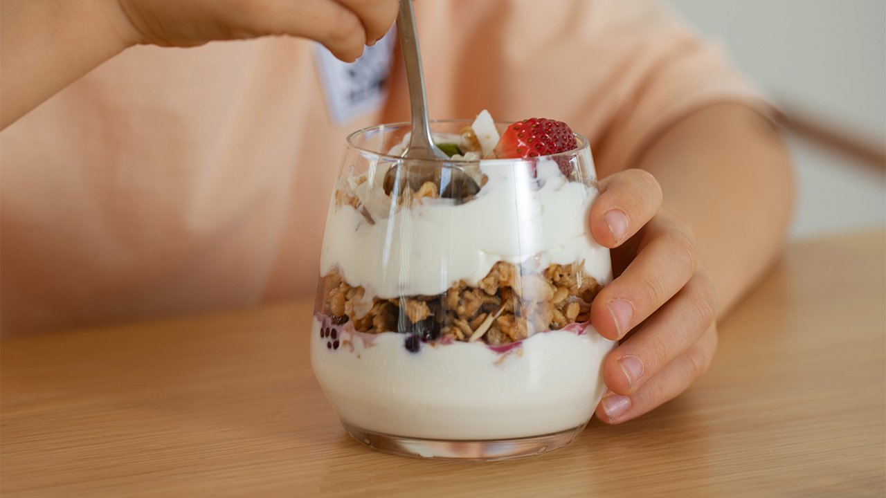 Yoğurt ve üzerine meyveyle granolanın yerleştirildiği bu iki katmanı tekrar ederek bardağı ağzına kadar doldur.