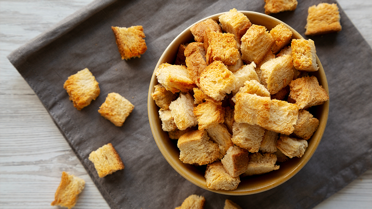 Bayatlayan ekmeklerini küp küp doğrayıp biraz zeytinyağı, sarımsak tozu ve kekik ile fırınlayarak harika krutonlar hazırlayabilirsin. Çorbalarının ve taze yeşil salatalarının üzerini süsleyen bu çıtır lokmalar, israfı önlemenin en pratik yoludur.