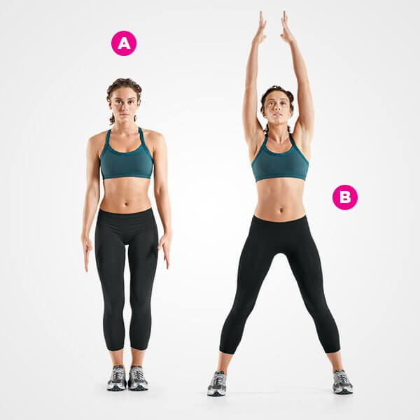 Bu hareket, kas dayanıklılığını artıran bir askeri antrenman olarak biliniyor. Başlangıç pozisyonunda ayakta dümdüz durun (A). Bacaklarınızı açarak zıplayın, aynı anda ellerinizi yukarı kaldırarak başınızın üzerinde birleştirin (B). Yine zıplayarak bacaklarınızı kapatın ve ellerinizi indirin.