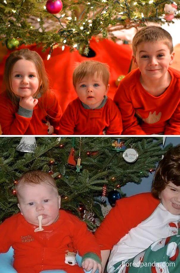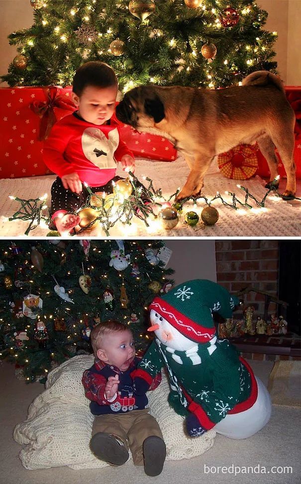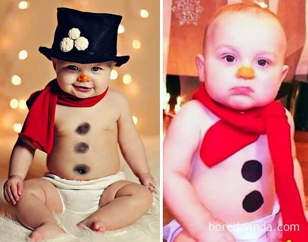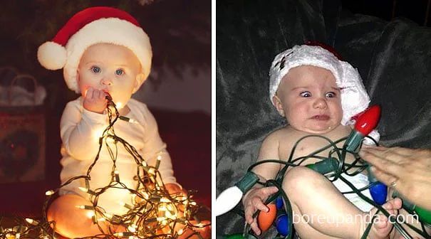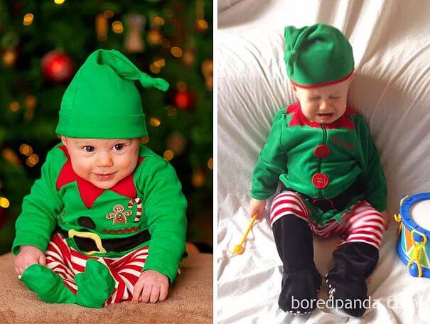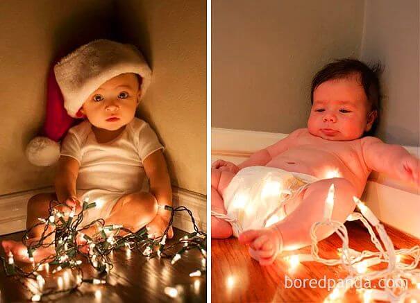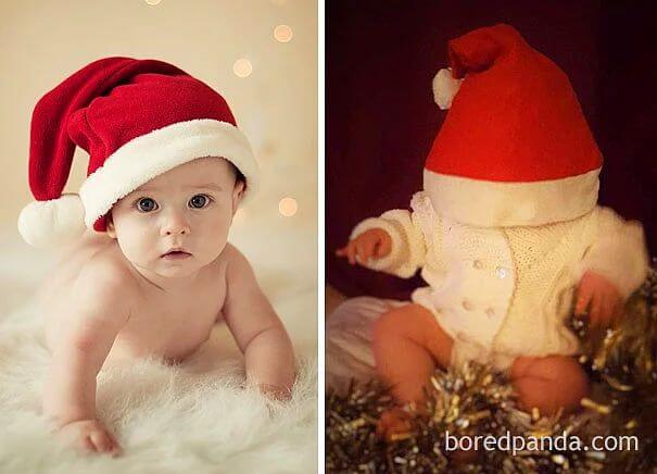 Gaflete düşmeyin. Onlar profesyonel çekimler olduğu için güzel, sizinkiler ise örnek aldığınıza hiç benzemediği için eğlenceli olacaktır. Eğlenceli olmasının sebebi iki fotoğraf arasındaki uyuşmazlıktır. Boredpanda'nın derlediği yılbaşı bebek fotoğraflarına özenerek kendi çocuklarının fotoğraflarını çeken ailelerin eserlerini sizler için düzenledik.