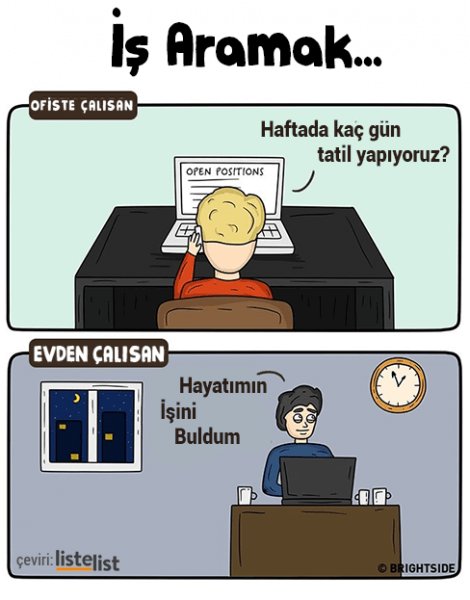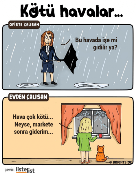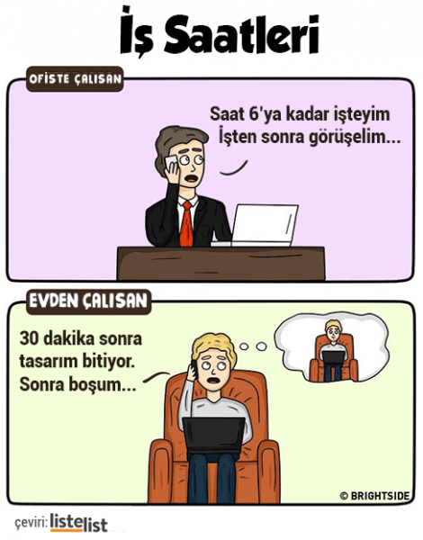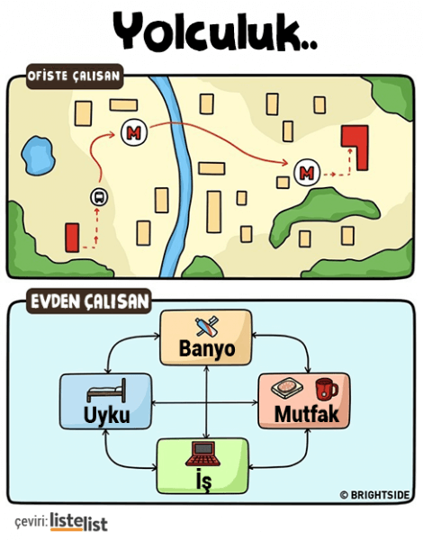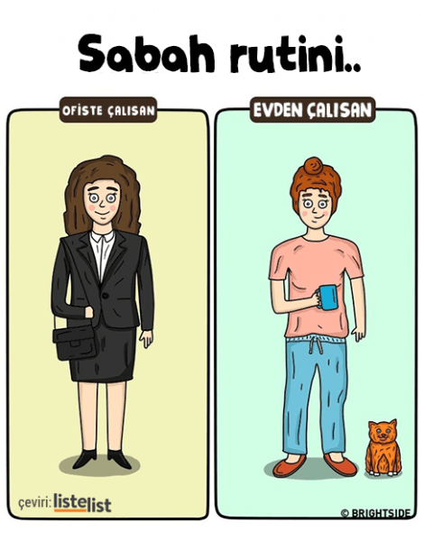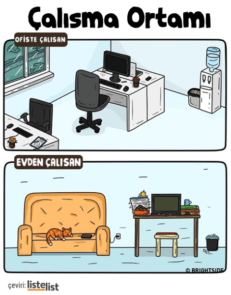 Evden çalışmanın da, ofiste çalışmanın da kendine göre zorlukları ve avantajları var elbette. Bu harika çizimler de ikisinin arasındaki farkları çok güzel bir şekilde özetlemiş.