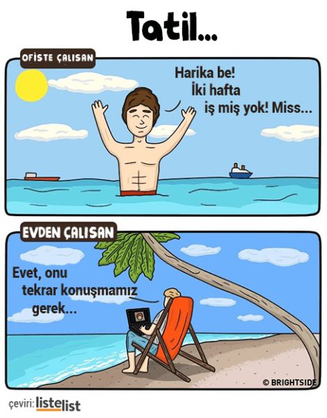8. Eğer evden çalışıyorsanız, tatil yaparken de işten uzaklaşamazsınız. Sürekli yapmanız gereken bir şey çıkar.