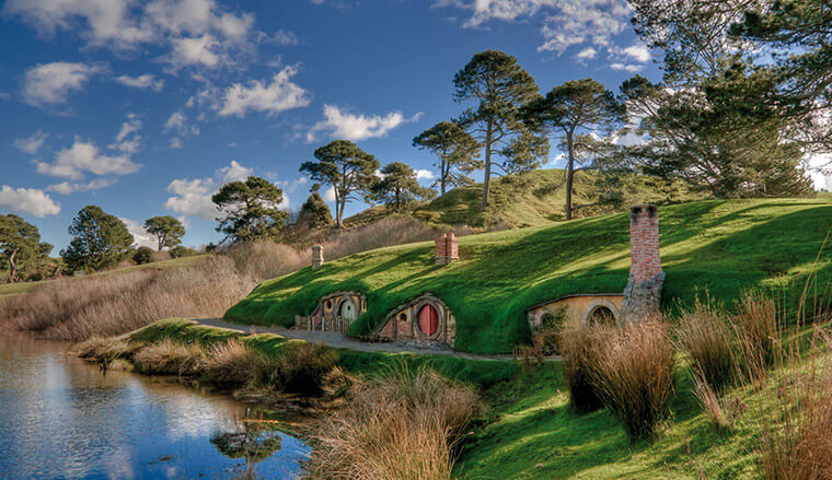 Yüzüklerin Efendisi üçlemesinden aşina olduğumuz Shire, Yeni Zelanda’nın Hobbinton bölgesinde şu an gerçeğe dönüşmüş durumda. Russell Alexander’in sahibi olduğu ve koyunlarını otlattığı 10.000 dönümlük çiftliğin etrafına 44 tane Hobbit evi serpiştirilmiş.