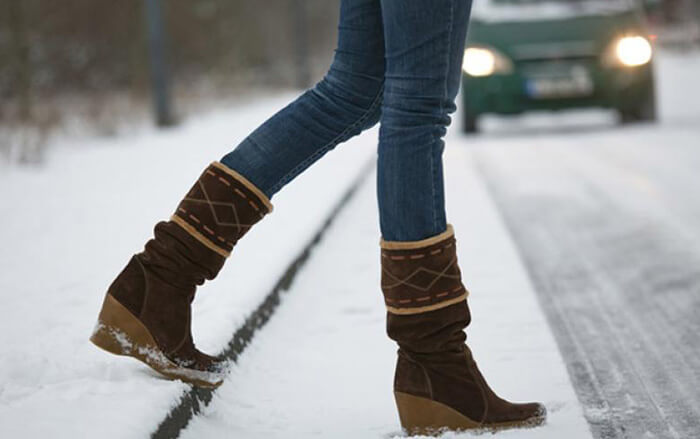 Dışarıda kar yada buz olması durumunda bu koşullara uygun biçimde kıyafet giyilmelidir. Dar kıyafetlerden ve topuklu gibi rahat yürümenizi engelleyecek ayakkabılardan uzak durmalısınız. Ayakkabının tabanı, kauçuk yada lastik olmalıdır.