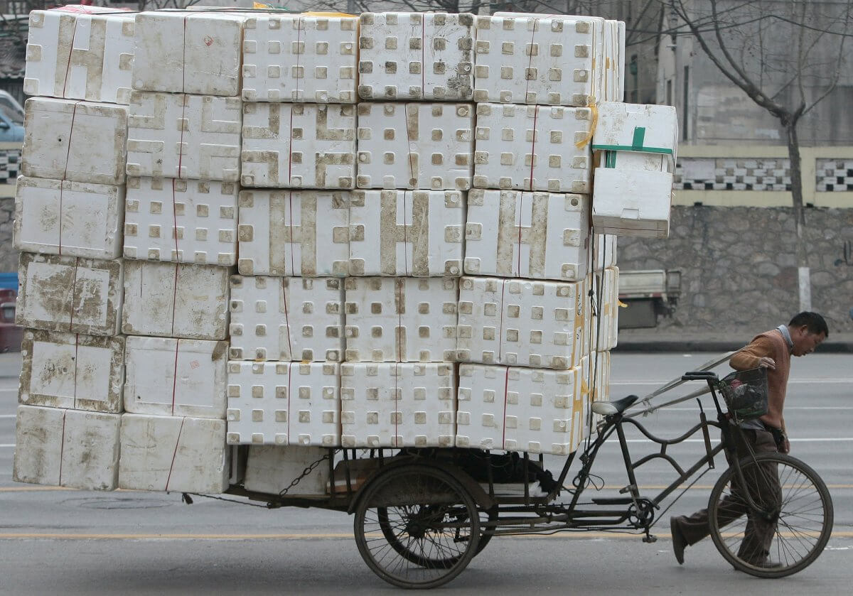 Yine Çin’de geri dönüşüme giden atıklar bisikletle taşınıyor...