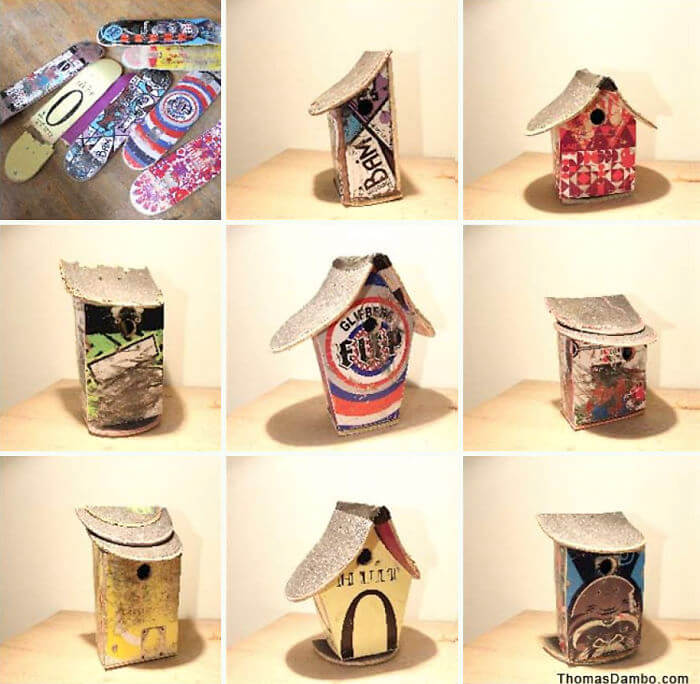 2012’de, kırılmış kaykaylardan yaptığı kuş yuvaları