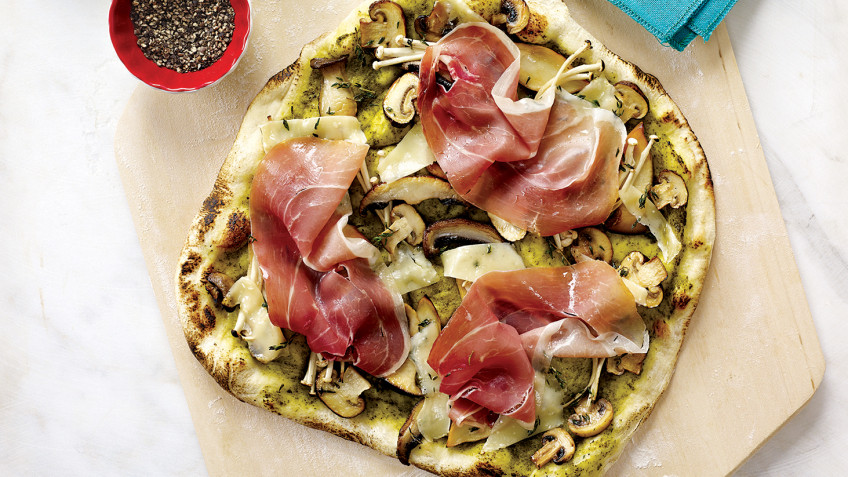 Karamelize soğan, kremsi Fontina peyniri, kekik ve İtalyan şarküterisinden dana jambonu ile hazırlanan bu ağızlara layık pizzadan iki dilim yediğinizde sadece 238 kalori alıyorsunuz. Malzemeleri beyazbiberle harmanlayarak soğanlar kahverengiye dönüşene kadar zeytinyağında kızartın; sonra da pizza hamurunun üstüne koyarak fırınlayın.