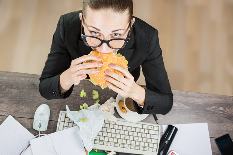 Hızlı yemek: Yoğun bir iş hayatı olan kadınların hızlı yemek yemeleri, kilo problemlerinin oluşmasına neden olabilir. Fast food tarzı besinlerin yenilmesi veya enerjisi yüksek atıştırmaların yapılması, vücutta yağ hücrelerinin büyümesine yol açabilir. Yemekler yavaş yenildiğinde tokluk hissi daha erken fark edilir ve daha az kalori alınır.